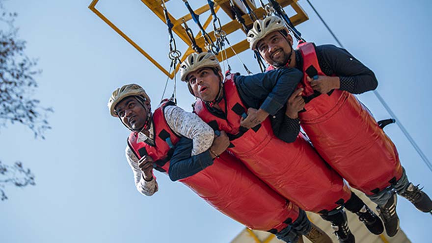 Feel the adrenaline rush with an exciting height 83 MTRS Valley Rope Jump over scenic Himalayan valleys.