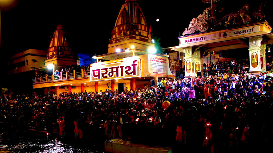 Experience the divine Ganga Aarti Ceremony at Parmarth Niketan, Rishikesh