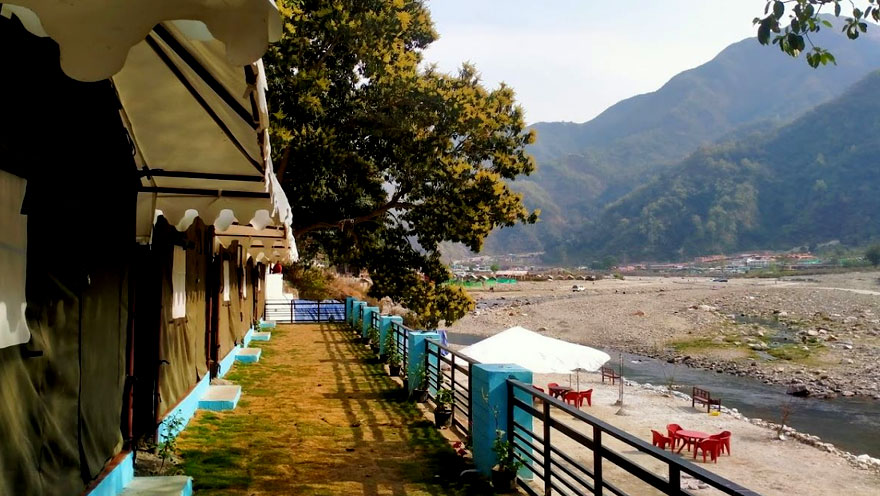 Explore experience Riverside Camping in Rishikesh Uttarakhand, Insta Beach Camp give two type stay deluxe 7 ac cottages and 7 Swiss camping attached washrooms Mohanchatti Rishikesh. All cottage and Camp/Tent breach river and valley view.