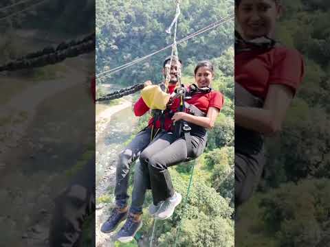 Jumpin Heights offer first fixed platform Valley Rope Jump Rishikesh India. Jump is done from the same Bungee Platform. You are fitted with a seat & chest harness which is connected to the fixed wire ropes. On jump, after a initial free fall, the ropes smoothly swing you like a pendulum. You need guts to jump, but the experience is exhilarating. After the Swing, the Jumpers are lowered down to a drop zone in the river which has only 2 ft of water. Walk up to the cafeteria and enjoy watching your photographs & video of the jump. Can be done alone or by 2 people in Tandem.
