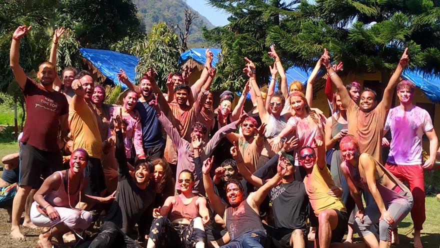 Rishikesh celebrates Holi both traditionally with colors, kirtans, and riverside gatherings, and through community parties (including camping and music).